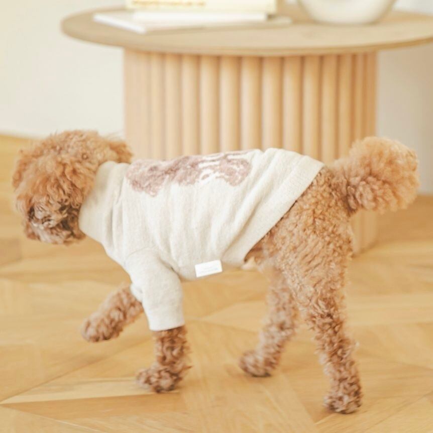 【大きなトイプードルジャガード入りのニットプルオーバー】