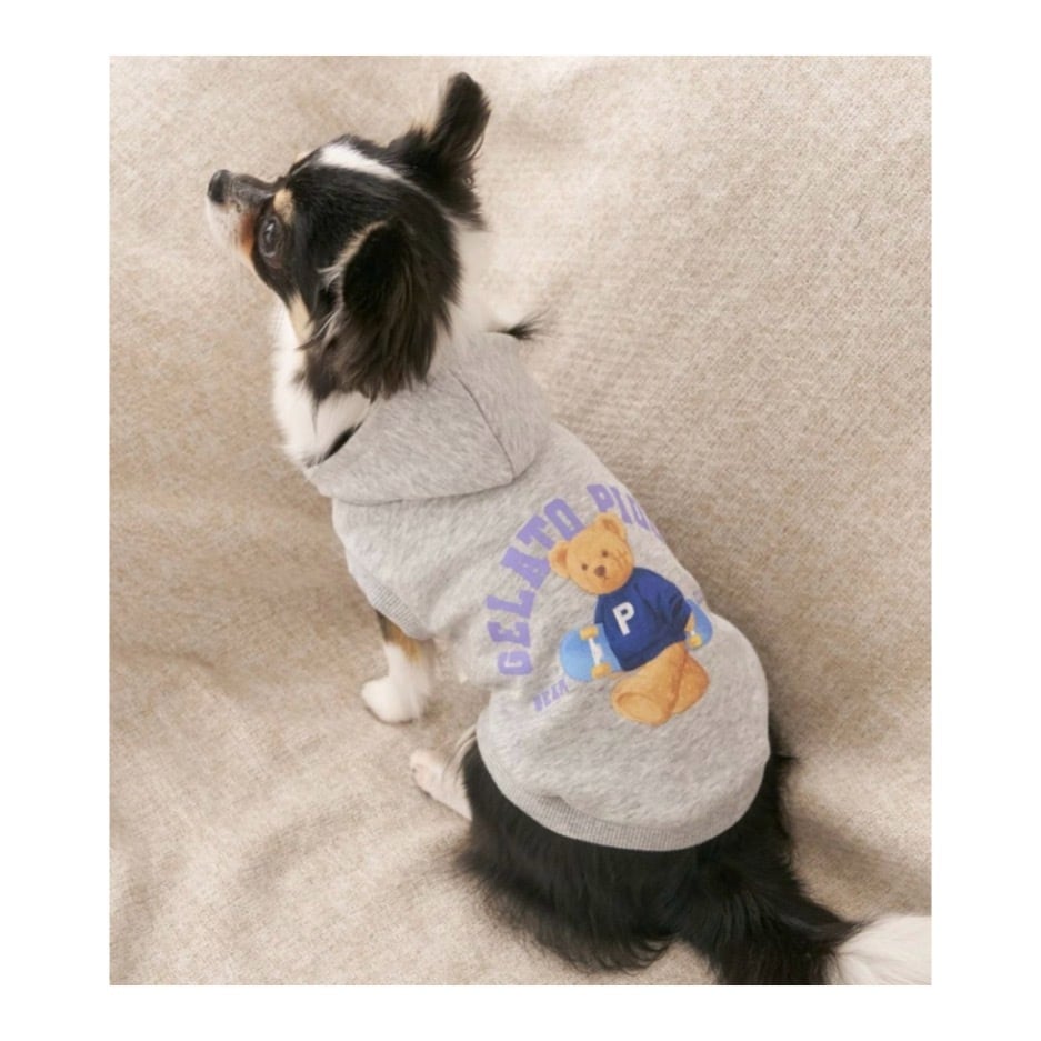 色々なスポーツを楽しむピケベアをテーマに、トレンドのスポーツテイストを取り入れた、オーナーさんとお揃いで着用いただけるDOG用プルオーバーです。ストレッチの効いた裏毛素材を使用したパーカデザインは、エアコン対策などにもおすすめ。背中には3種目のスポーツをモチーフにしたベアの絵柄をプリントしました。絵柄はボディカラーごとに異なり、アイボリーはストレッチ、グレーはスケートボード、ネイビーはベースボールをモチーフにしています。きょうだいや親子で色違いを楽しんだり、LADIES’、HOMMEのルームウェアとのリンクコーディネートもお楽しみください。