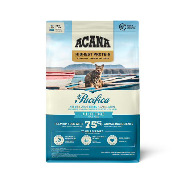 アカナ パシフィカキャットレシピは、新鮮な海水魚を贅沢に使用し、