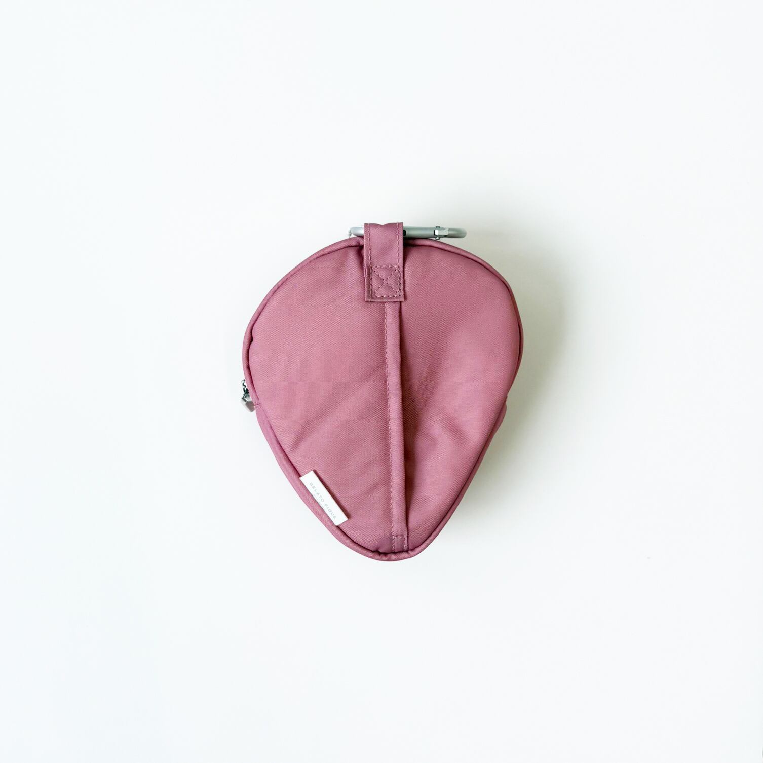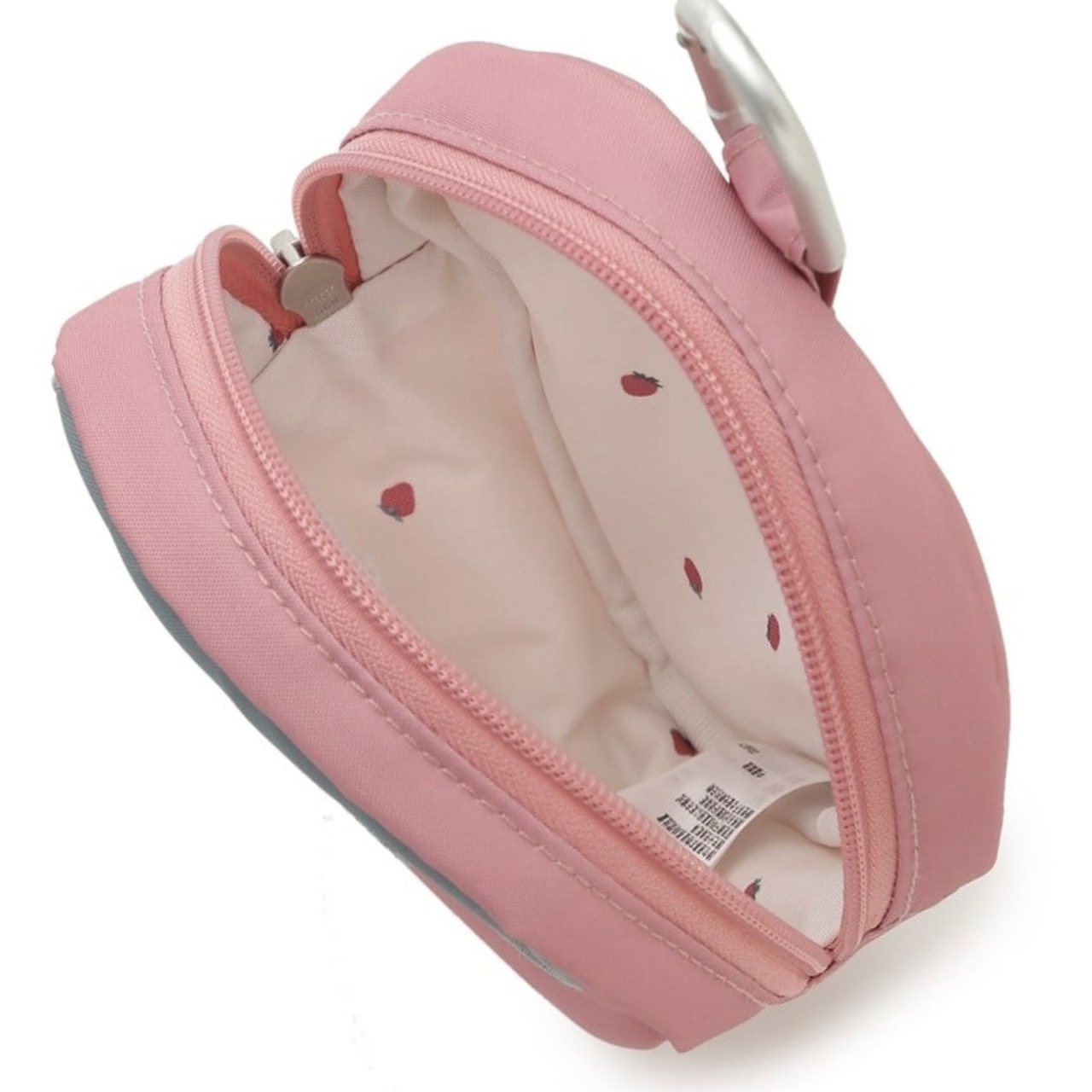 摩擦や水に強いコーデュラ生地を使用した、お散歩バッグに付けられるカラビナ付きのストロベリー型マナーポーチです。