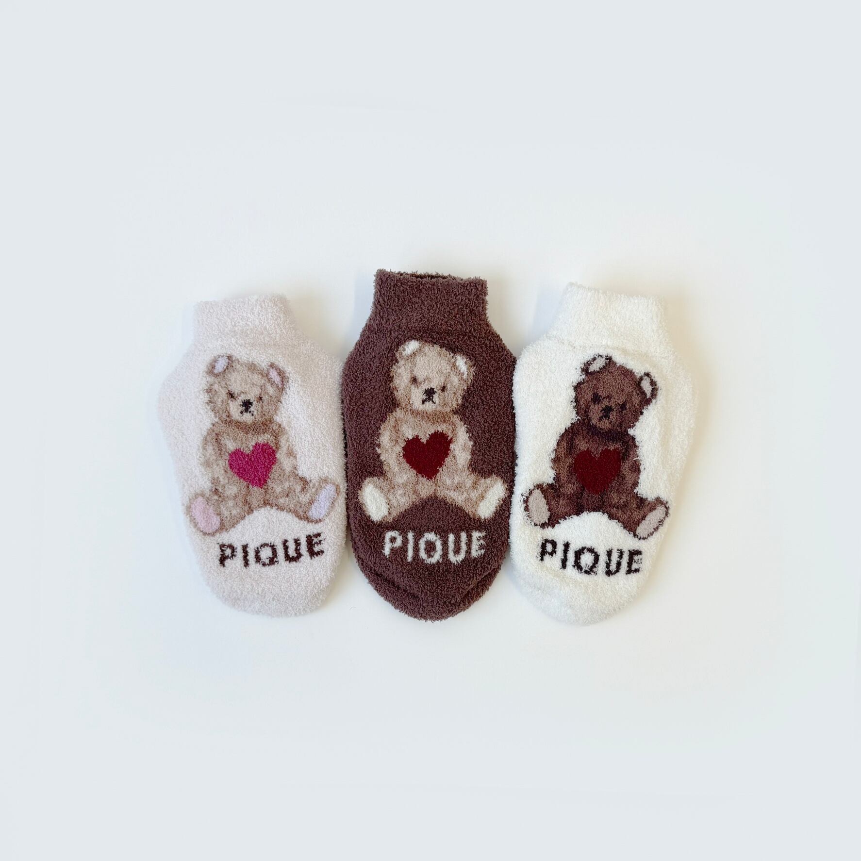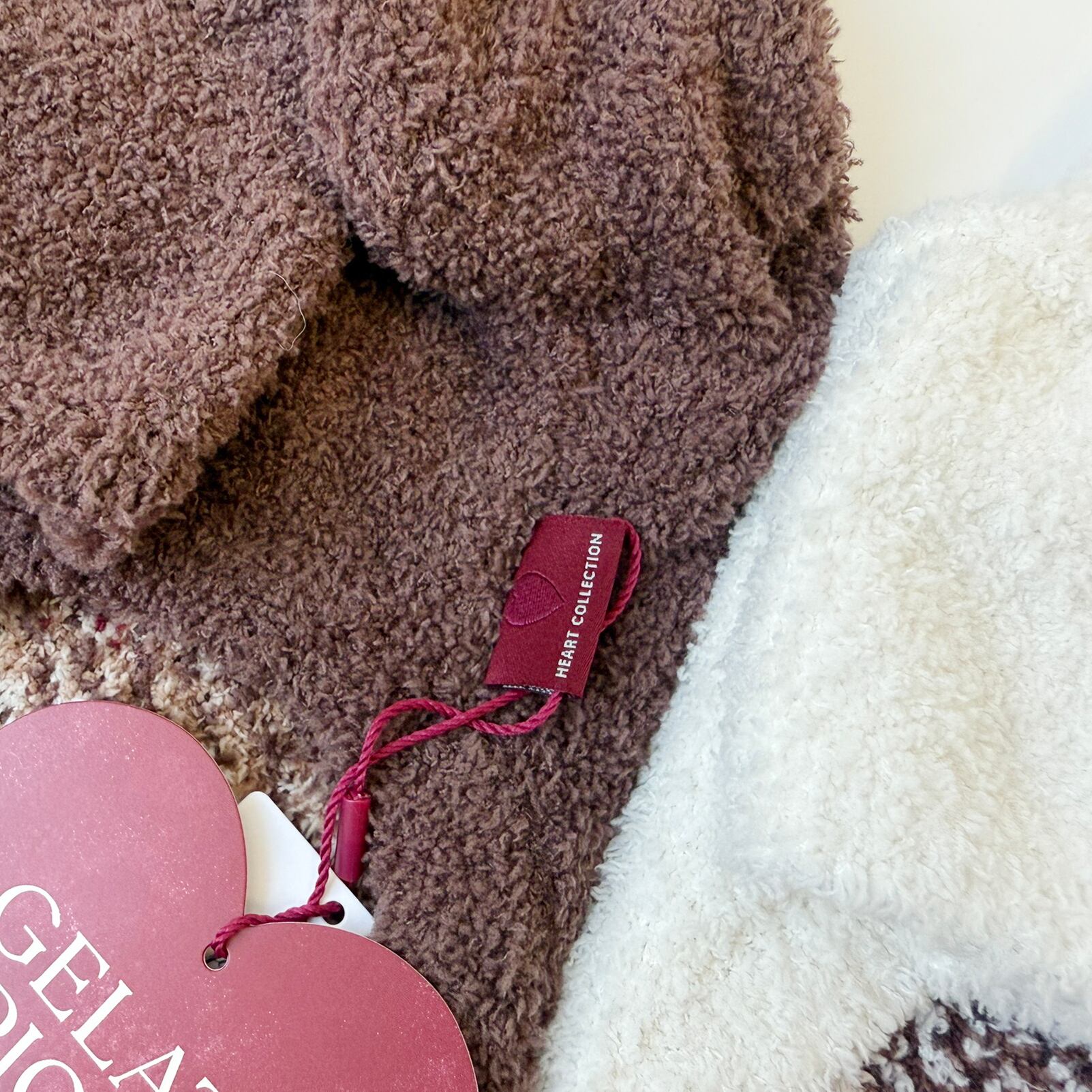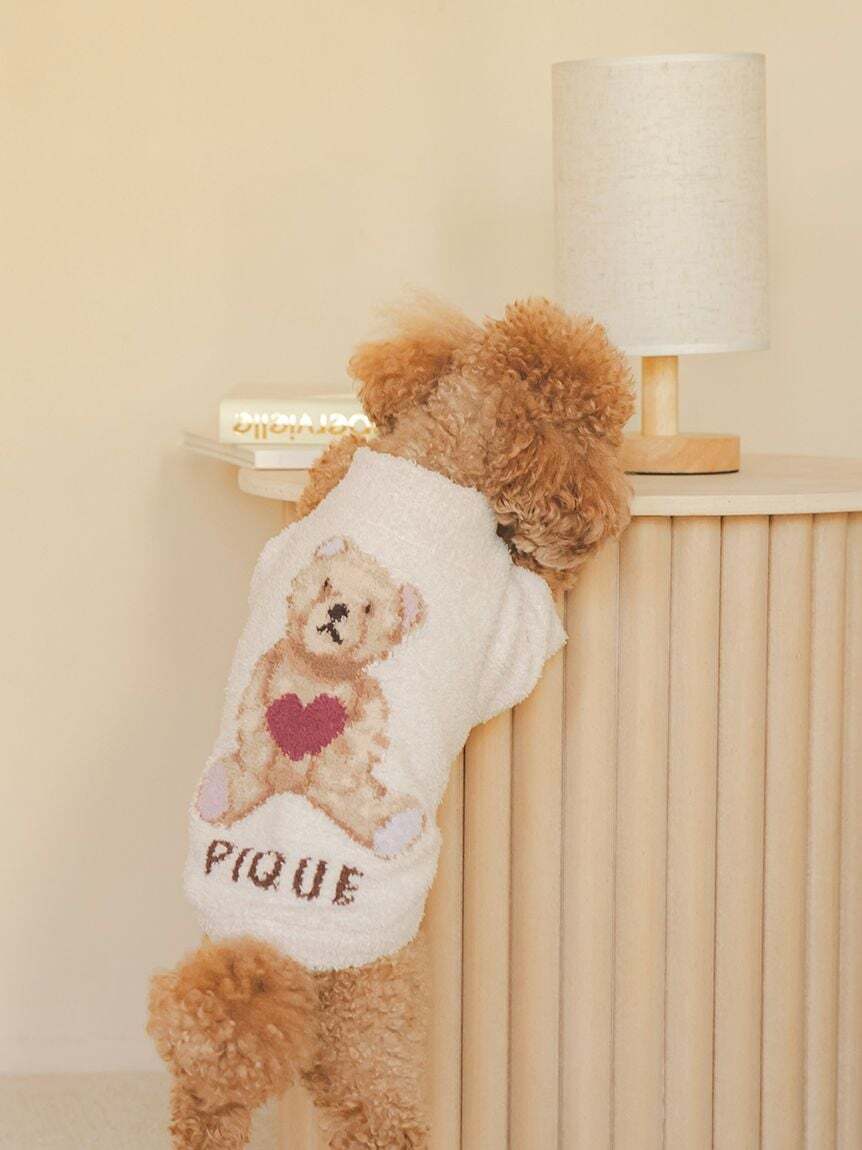 ハートをキャッチーにデザインした、バレンタインシーズンに贈る温かなHEART COLLECTION。赤いハートを持ったベアジャガードが印象的な、オーナーさんとお揃いで楽しめるDOG用のハイネックプルオーバーです。ハイネックなので肌寒い時期のお散歩にもおすすめです。色はクリーム、ブラウン、ピンクの3色展開で、ベアの色使いもそれぞれ異なっています。同シリーズのオーナーさんのルームウェアとリンクコーディネートを楽しんだり、多頭飼いなら色違いで揃えていただくのもキュートです。