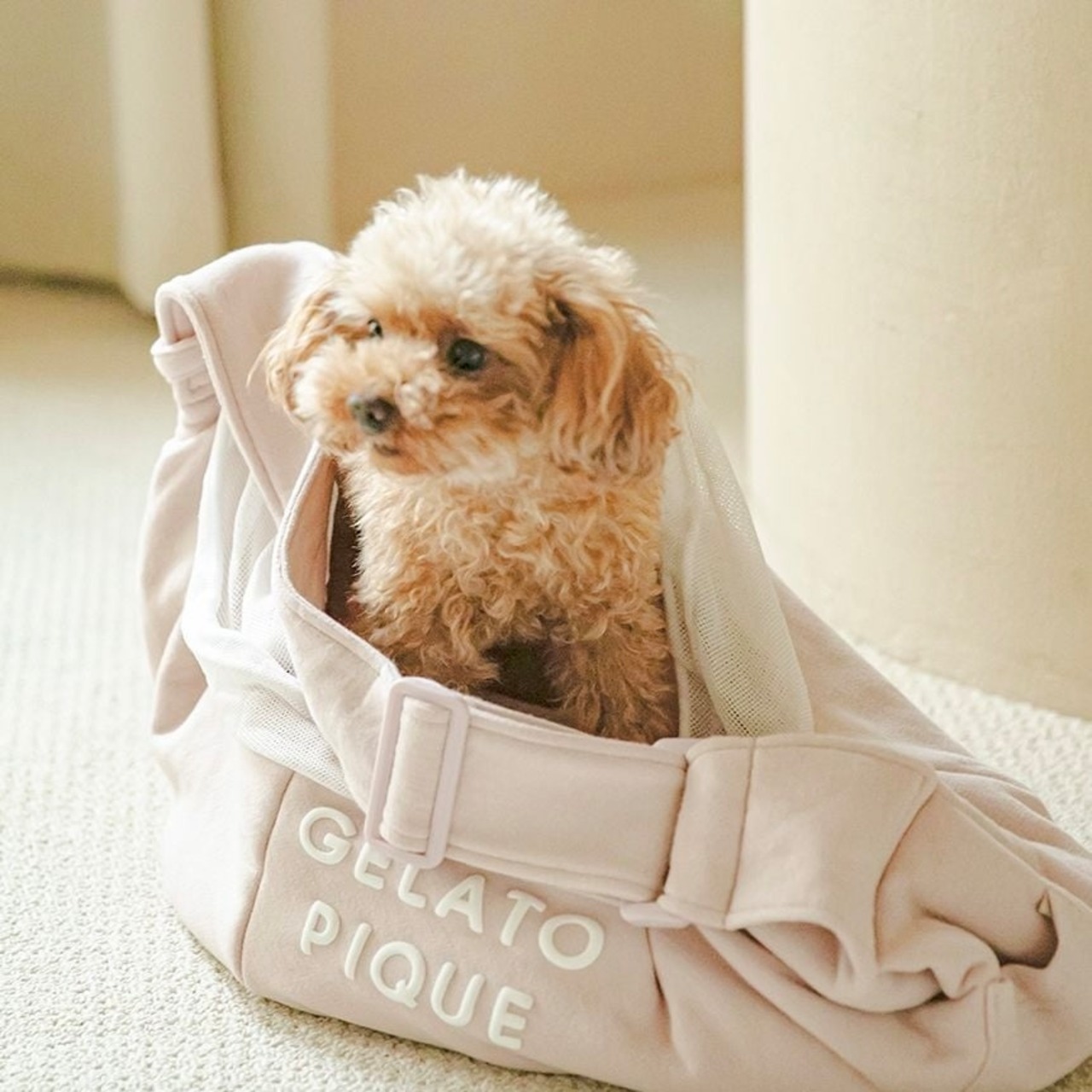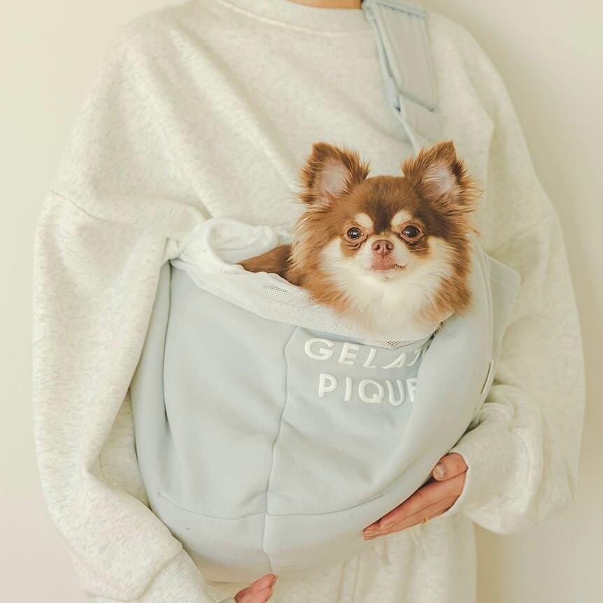 発売以来ご好評をいただいている裏毛素材のスリングを、より使いやすくアップデートしました。ワンちゃんの身体をホールドできるよう、丈をより深くして底板クッションも追加。ブランドロゴが映えるシンプルなデザインです。色はブルーとピンクをご用意しました。